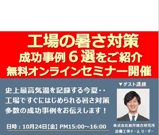 ★★★★工場の暑さ対策無料オンラインセミナー開催★★★★