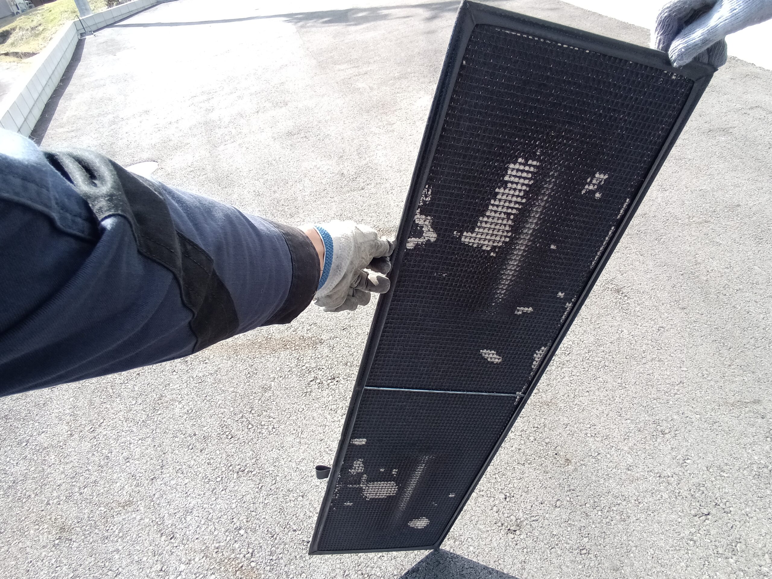 油汚れや粉塵の蓄積が見られましたが、洗浄により性能回復が期待できます。